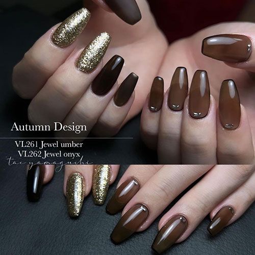 単色でも十分ステキで上品ネイルできますが、ジュエルシリーズのオニキスやトパーズを使ってべっ甲チックにしたり色々と楽しめるカラーです。
