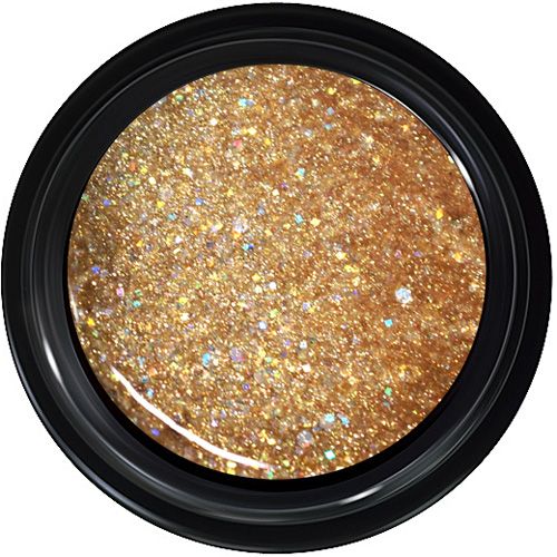 ゴールド系のラメとグリッターとホロですが、オーロラ系の輝きもあり、角度によって様々な色彩の輝きを放って綺麗です。華やかで上品です。