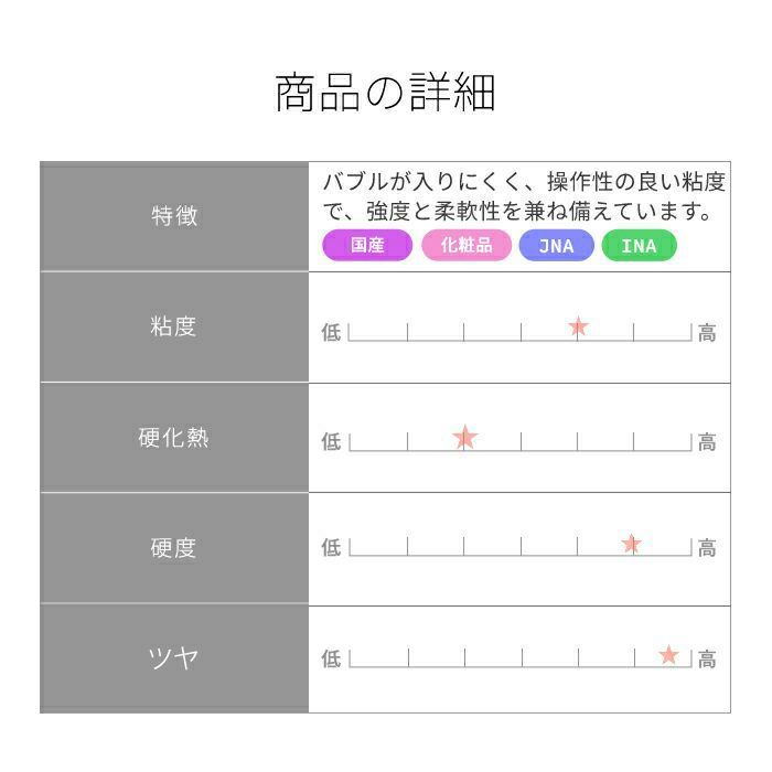 硬化時間:LED(36W)10秒、LED(6W)30秒、CCFL(12W)60秒、UV(36W)60秒