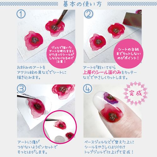 シートがとても薄くて柔らかいのでジェルで描いても硬くなりにくく、シート自体の粘着力もしっかりあるので、期待以上に貼りやすくてとても良かったです。