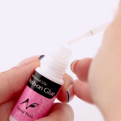 ブラッシュオングルー(瞬間接着剤)で爪を接着、ネイルフィラー(補修パウダー)で上から覆い、補強します。