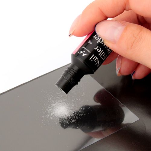 4.ブラッシュオングルーが乾かないうちに、ネイルフィラーパウダーを薄く均一に振りかけます。乾いたら、余分なパウダーを払い落とします。STEP3と4を2~3回繰り返します。