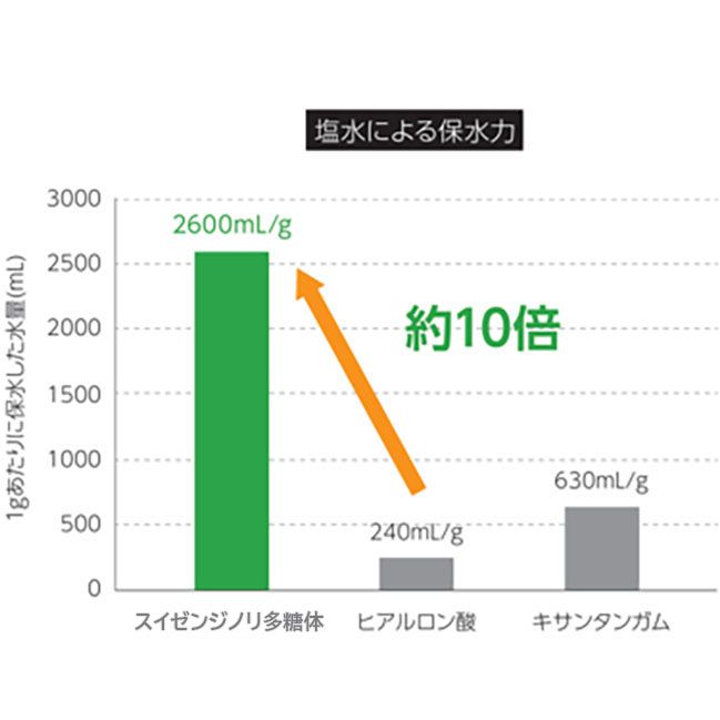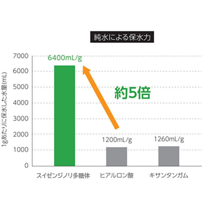※スイゼンジノリ多糖体はヒアルロン酸の5~10倍の保水力