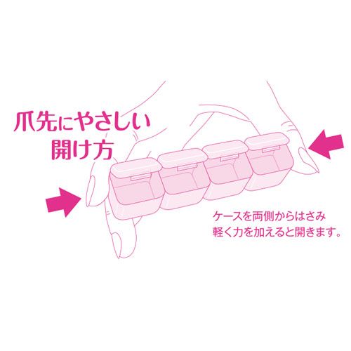 4セクションケースは、サイドを押すだけでフタが開き、爪先を傷めない設計。