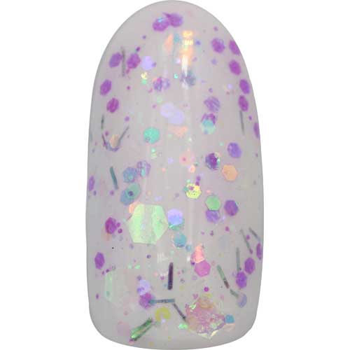 約0.25mm、1mm、2mm、3mmの六角ホログラムが入った、濃いめのパステル色のグリッターです。
