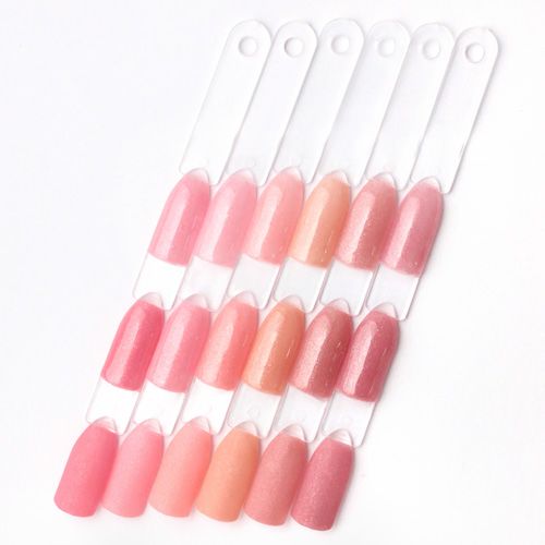 1度塗り、2度塗り、グラデーション、マットコート仕上げ、ミラーパウダーの見本など、仕上がりイメージが分かりやすい!