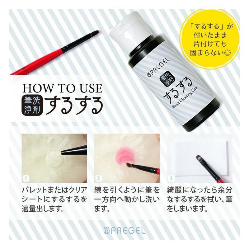・するするを適量取り、筆先になじませてジェルをやさしく押し出すように洗ってください。