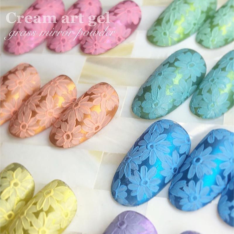 ホイップクリームのような不思議な質感で、流れにくく花柄はもちろん様々なアートに使えるアート用カラージェルです。
