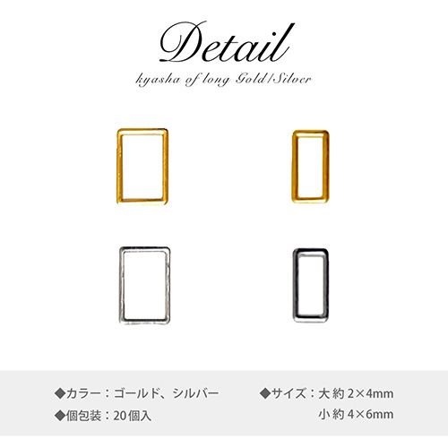 ネイリストHanakoがセレクトした、華奢な厚みのない長方形フレーム。超極薄なのに、ほのかに立体感があり、チープにならないのが魅力的!たやすく曲げることができ、形状をキープできるので、爪のカーブに沿わせる事も簡単です。