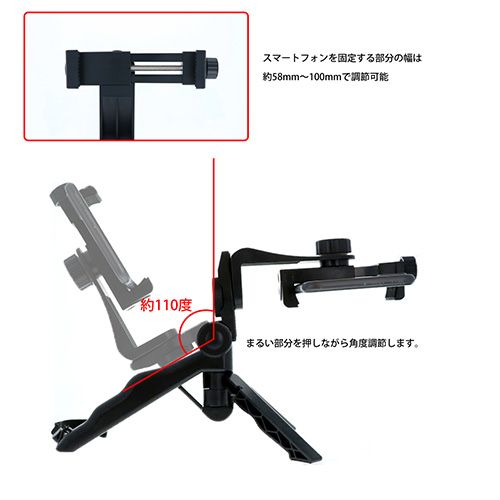 ・スマートフォンのほか、1/4インチ対応の撮影機器を固定して使用可能