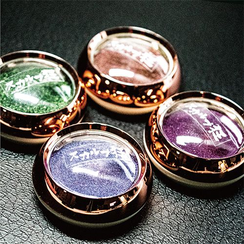 派手しテンション上げたいネイルの時にこちらを使います。光加減で色味が変わるのでワンカラーデザインにします。