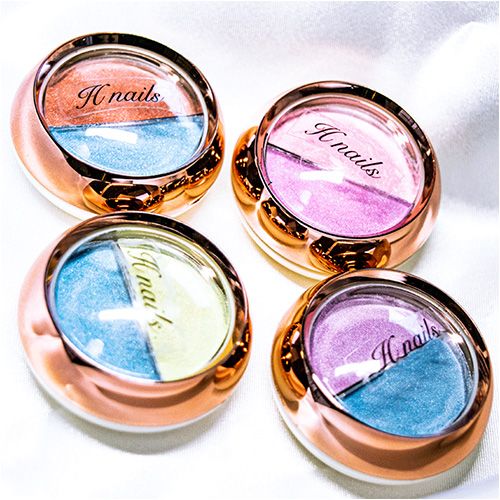 2色セットになっているのと、プレスされているので粉の飛び散りもなく、いろんなカラーを混ぜてアートしやすいです。