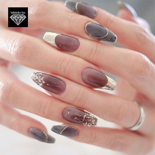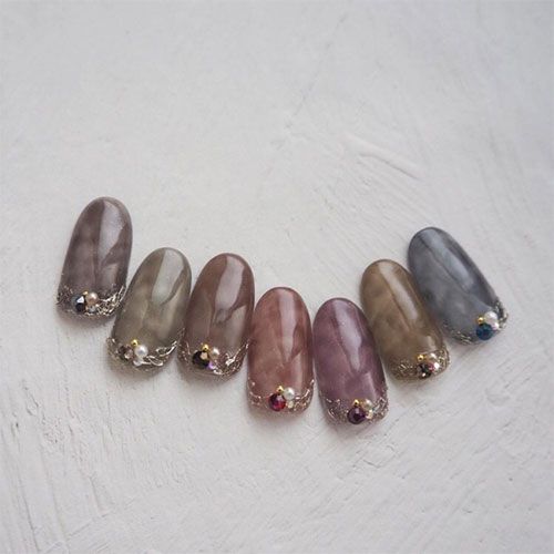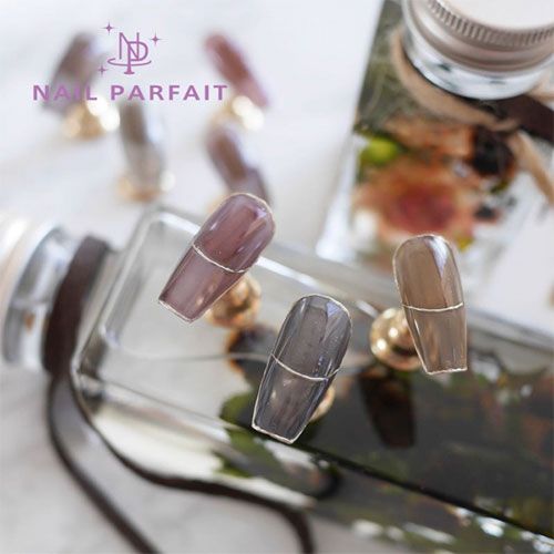 青みのカラーのブルーがネイルベッドの色と重なり合い、赤みを抑えた落ち着きのあるクールな色味に仕上がります。