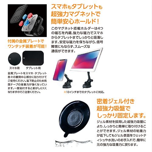 スマホもタブレットも超強力マグネットで簡単安心ホールド!