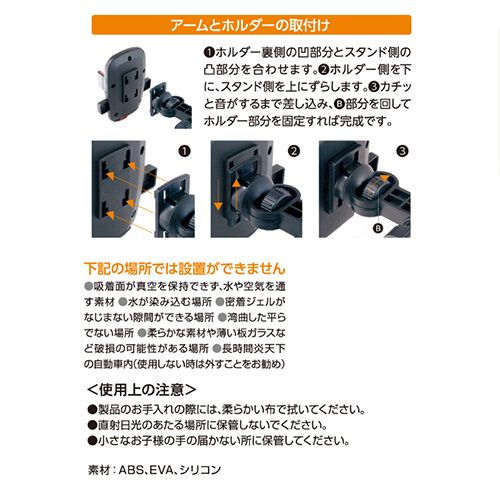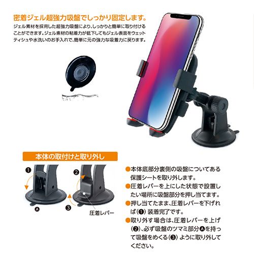 密着ジェル付き超強力吸盤でしっかり固定し角度をフレキシブルに調節可能。