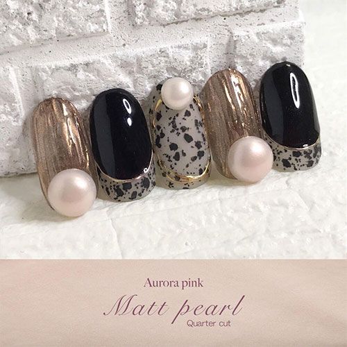 クォーターカットなのでラウンドパールより扱いやすく、またハーフカットより存在感のある仕上がりになります。