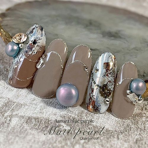 クォーターカットなのでラウンドパールより扱いやすく、またハーフカットより存在感のある仕上がりになります。