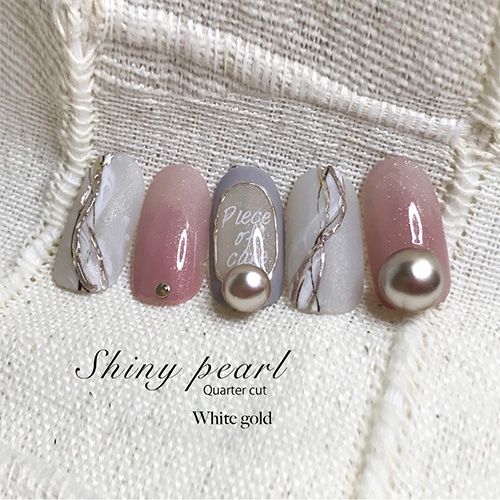 つやのあるパール。クォーターカットになのでラウンドパールより扱いやすく、またハーフカットより存在感のある仕上がりになります。