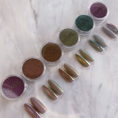 あまり見たことないカラーのミラーパウダーです。マットコートするとまた表情が変わりました。