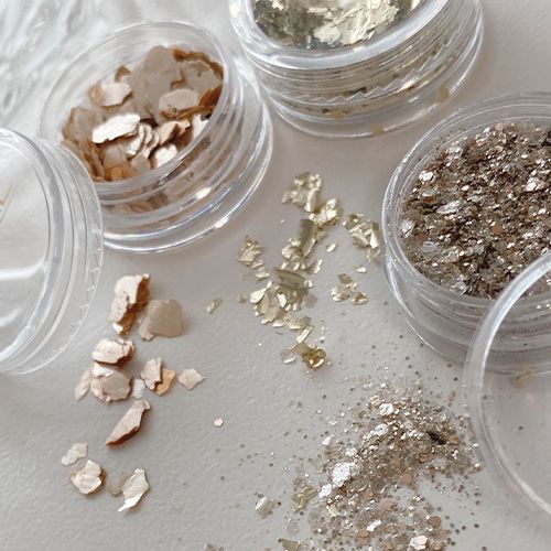 グリッターの上にワンポイントで散らしたり、シェルとの相性も抜群です。