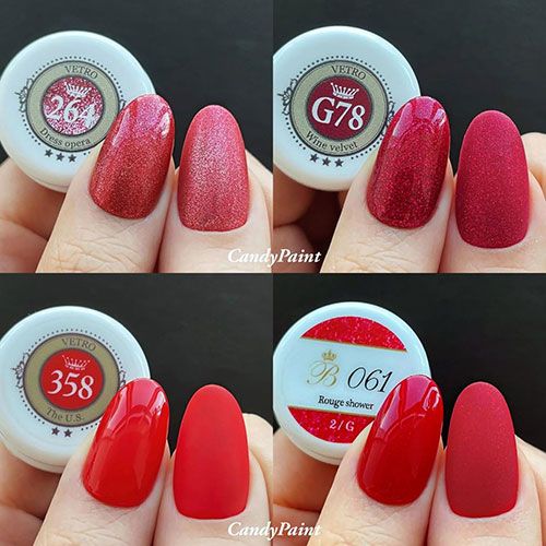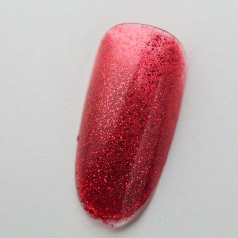 ちょうどいい大きさのラメがギッシリ!色は真っ赤って感じです。季節問わず使える赤色です