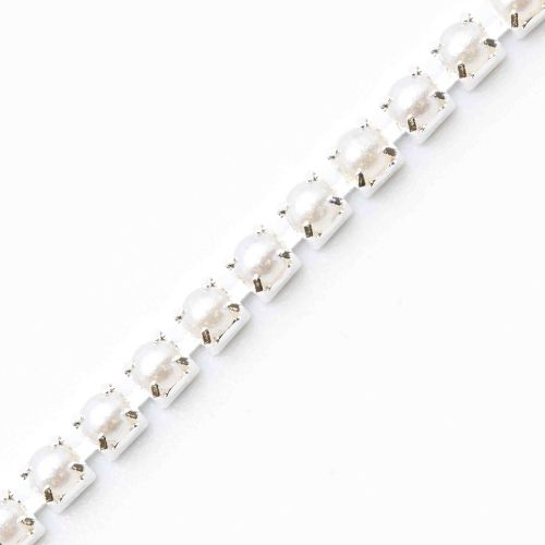 シルバーラインストーンチェーン パール 2mm【お取り寄せ】【ゆうパケット】