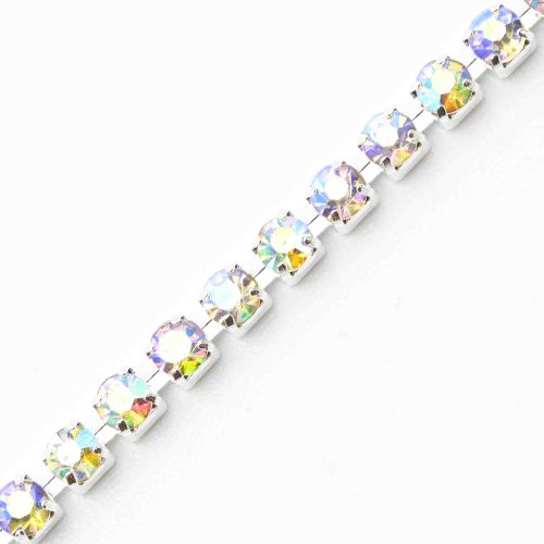 [欠品]シルバーラインストーンチェーン オーロラ 2mm【お取り寄せ】【ゆうパケット】