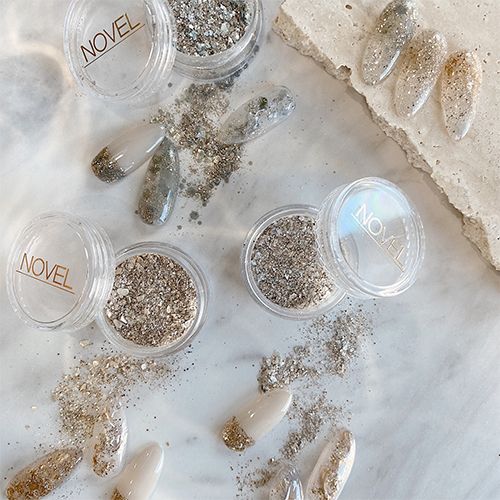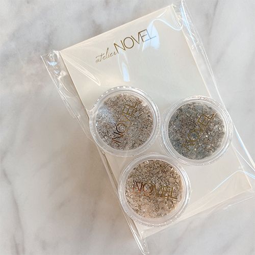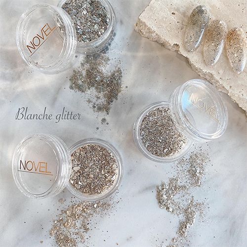 白いつぶつぶみたいなのがラメに混じってて冬っぽいラメかな?ニュアンスに使用したらめっちゃおしゃれなネイルになりました。