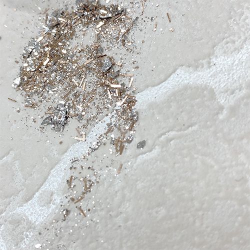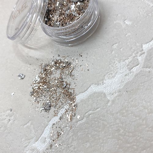 シルバーの箔とシャンパンカラーの細長いホロがアクセントになったグリッターです。