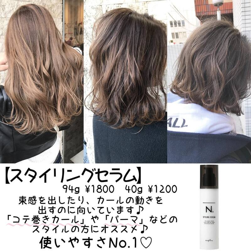 スタイリングセラムはシアバターとボタニカルエキスを配合。適量を手のひらにとり、よくのばしてからスタイリングを。