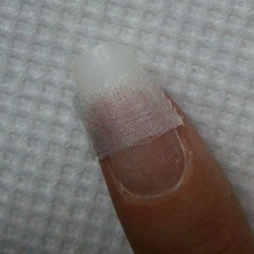 繊維を通して爪表面にまでネイルグルーを十分に行き渡らせ、透明感を持たせながら接着強度を上げることができます。