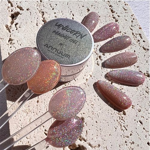 1.ベースカラーを塗布して硬化後、ユニコーンマグネットジェルを塗布します。
