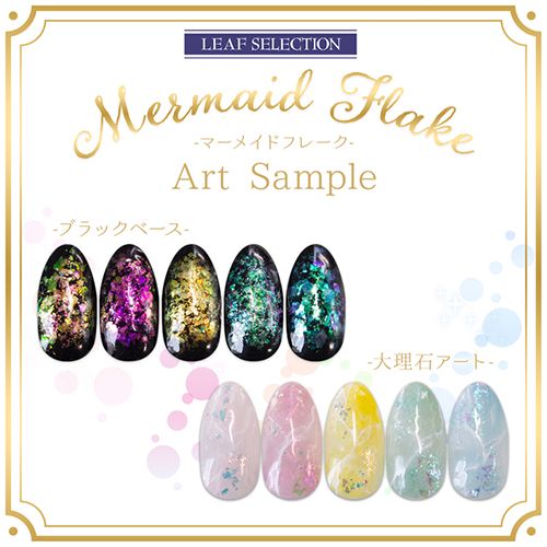 単色使いはもちろん、何色か組み合わせたり、ニュアンスネイルや大理石ネイルのポイントとして使用するとアートに奥行きが出るのでオススメです!超極薄で柔らかいフレークを使用しているため、埋め込みも簡単でフォルムを崩すことなく綺麗に仕上がります。