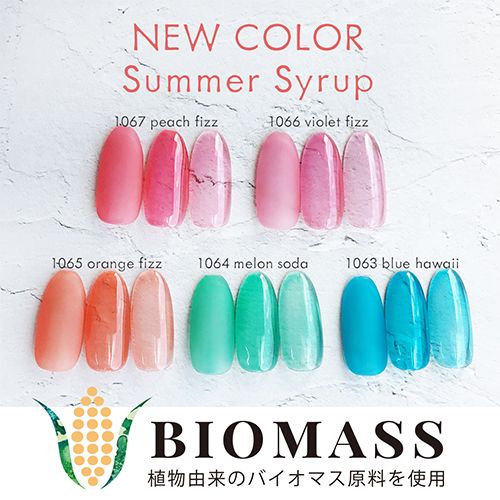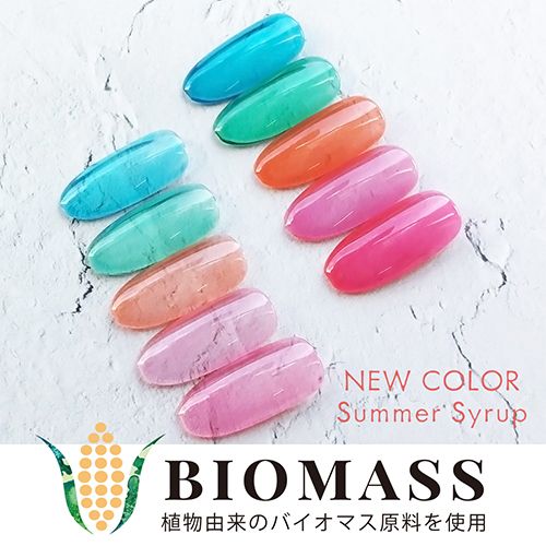 植物由来のバイオマス原料使用のちゅるんカラー。夏らしいポップなカラー!涼しげなクリア感!