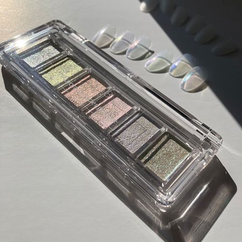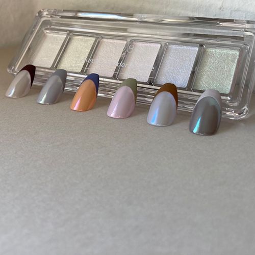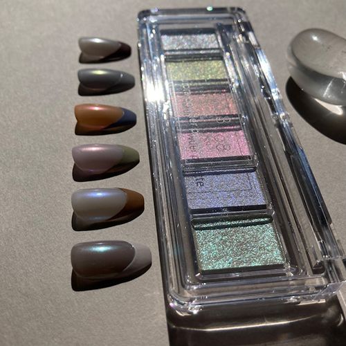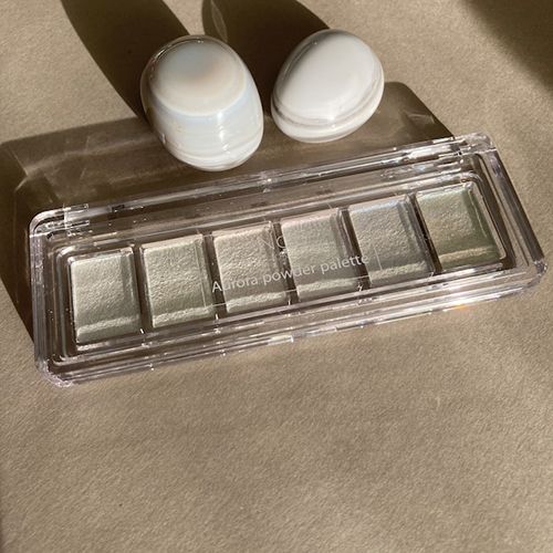 オーロラパウダーの固形型パレットです。単色に光る上品なカラーで6色入っております。