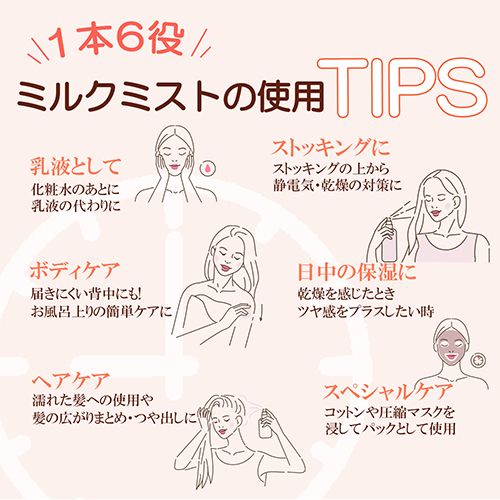 ミルクタイプのミスト!スキンケア時に、お風呂上りの全身の保湿に、朝のヘアセットにべたつかない使用感でメンズにもおすすめ!
