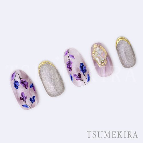 キラキラした奥行きのあるニュアンスや繊細なお花のアートなどが得意です。