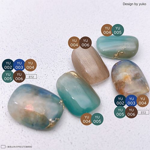 ※YU006のみなめらかに広がりつつもピタっと留まりブラシ跡を残したアートや凹凸を出しやすい「クリエイト処方」。
