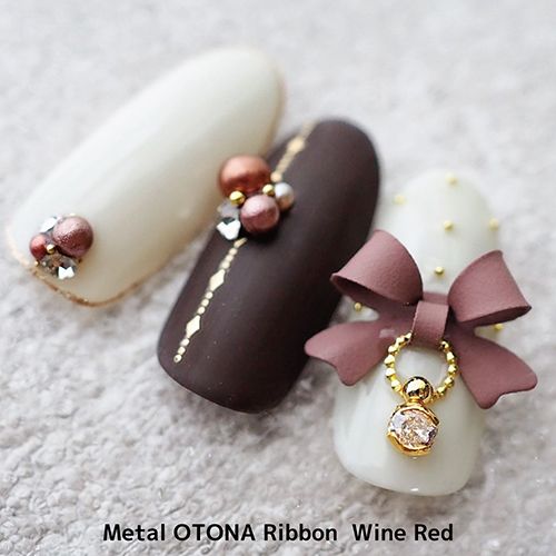 メタル素材の大人かわいい上品なリボン リボンは可愛すぎるという方にはおすすめ! 定番のブラック&ホワイト加え大人カラーのワインレッドとブラウン