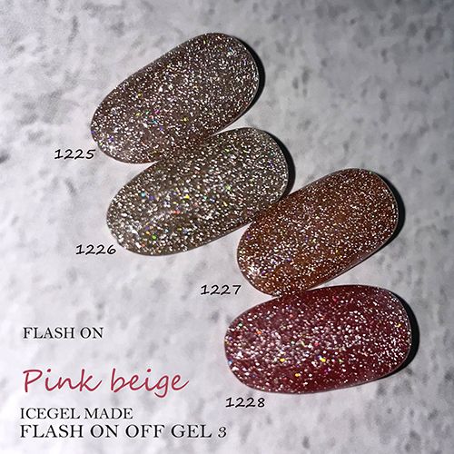 2トーンのグリッターが自然光と照明光で輝きが異なるフラッシュのグリッタージェルです。