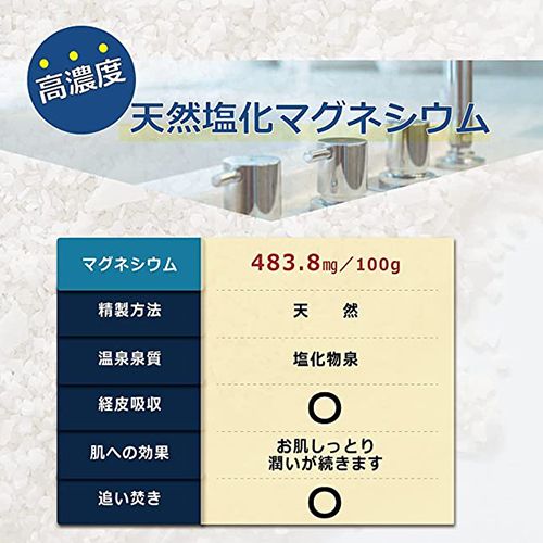 普段からスポーツやハードワークをしたり日々筋肉を酷使するアスリートのバスタイムに米国ユタ州のグレイトソルトレイクで精製した、高濃度の天然塩化マグネシウムとミネラルが含有する高品質なバスソルトです。