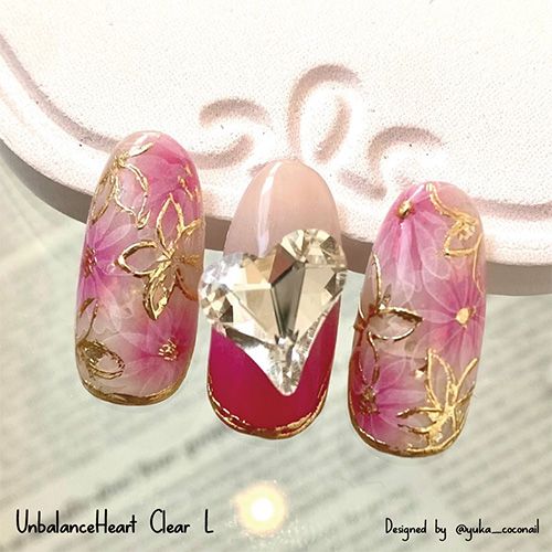 アンバランスな形のハートのガラスストーン。存在感のある大きめのハートパーツでひとつ置くだけでかなり存在感があります。