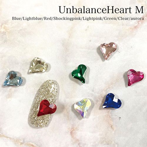 アンバランスな形のハートのガラスストーン。少し大きめのハートパーツで他のパーツともバランスよくデザインができます。