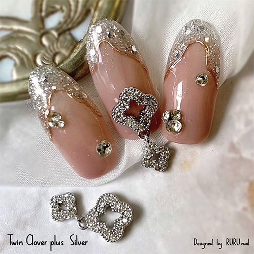 人気のクローバープラスに小さいクローバープラスがスイングする状態で付いたとても可愛いパーツです。ひとつ置くだけでデザインが可愛く豪華になります。