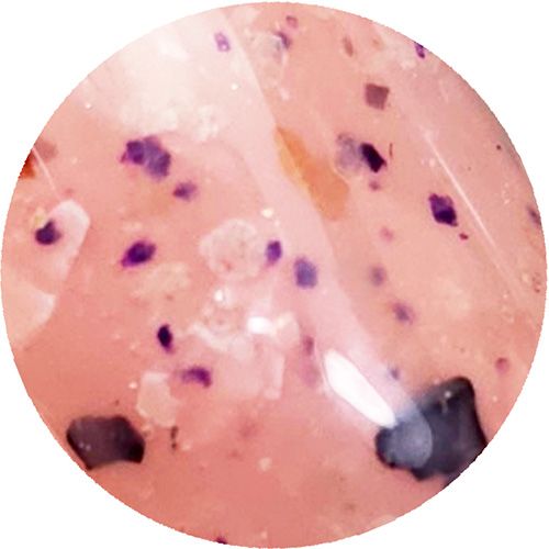 不揃いの光沢感のあるチップや黒チップ、グリッターを含んでおり、塗るだけで本物のテラゾータイルの模様になる。