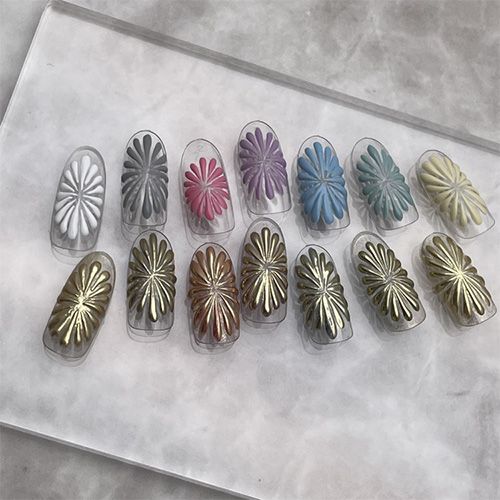しっかりと発色し、硬化後にミラーパウダーも密着するので幅広くアートも楽しめます。