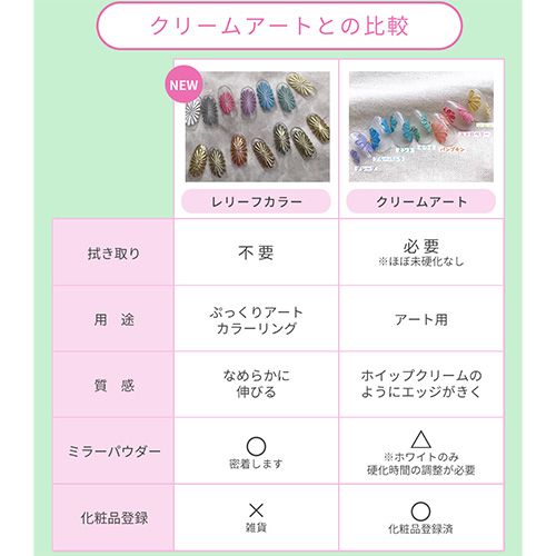 化粧品(コスメカラー)の枠を超えて、優れた発色と無限に広がるネイルアートをお楽しみください。