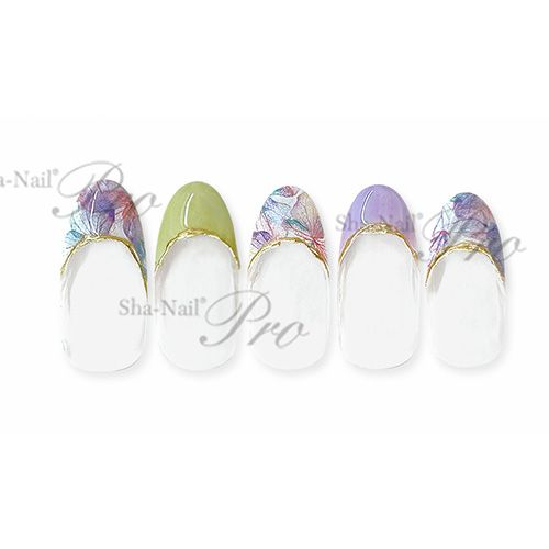 ジェルネイルと同じく紫外線でインクを硬化させる最先端のUVプリントを採用し、1点1点の絵柄の周囲を精密にカットしました。