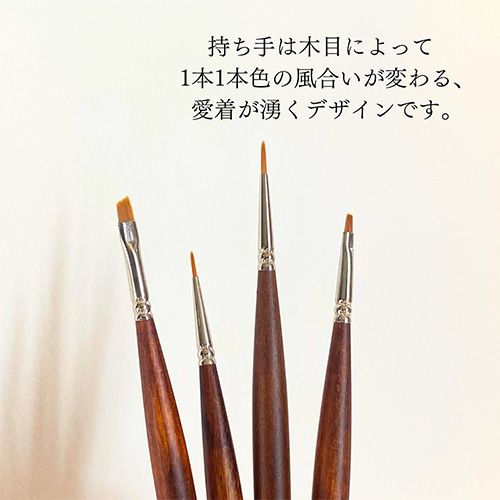 穂先の毛量が多めで、絵具の含みがUP。絵具を何度も取らずに済むようになり、さらにスピーディーな作業が可能になります。