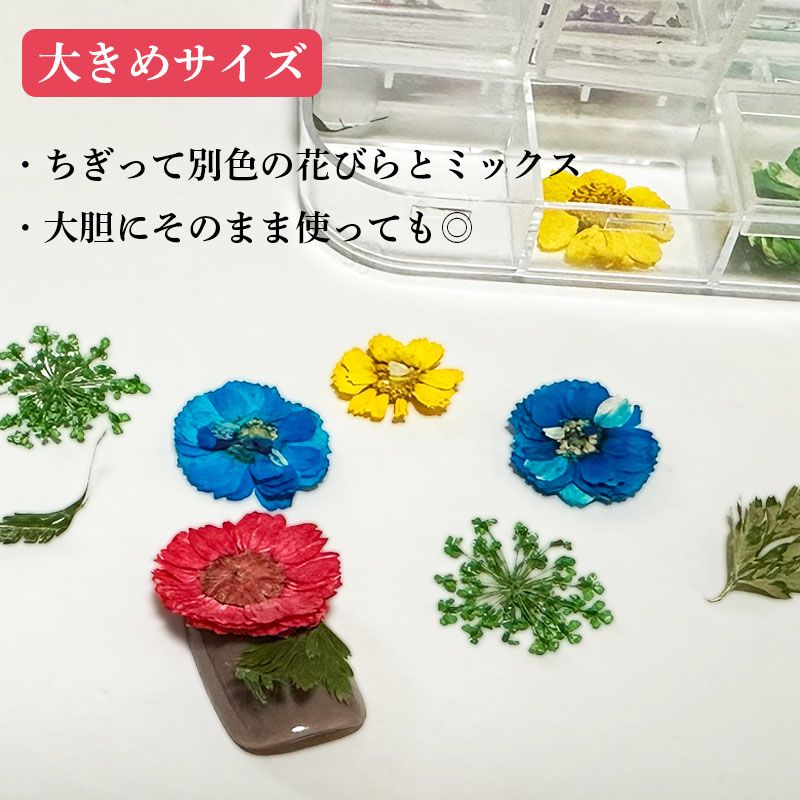 レジンアートに使えそうな大きめの花ですが、私はネイルに使っています。